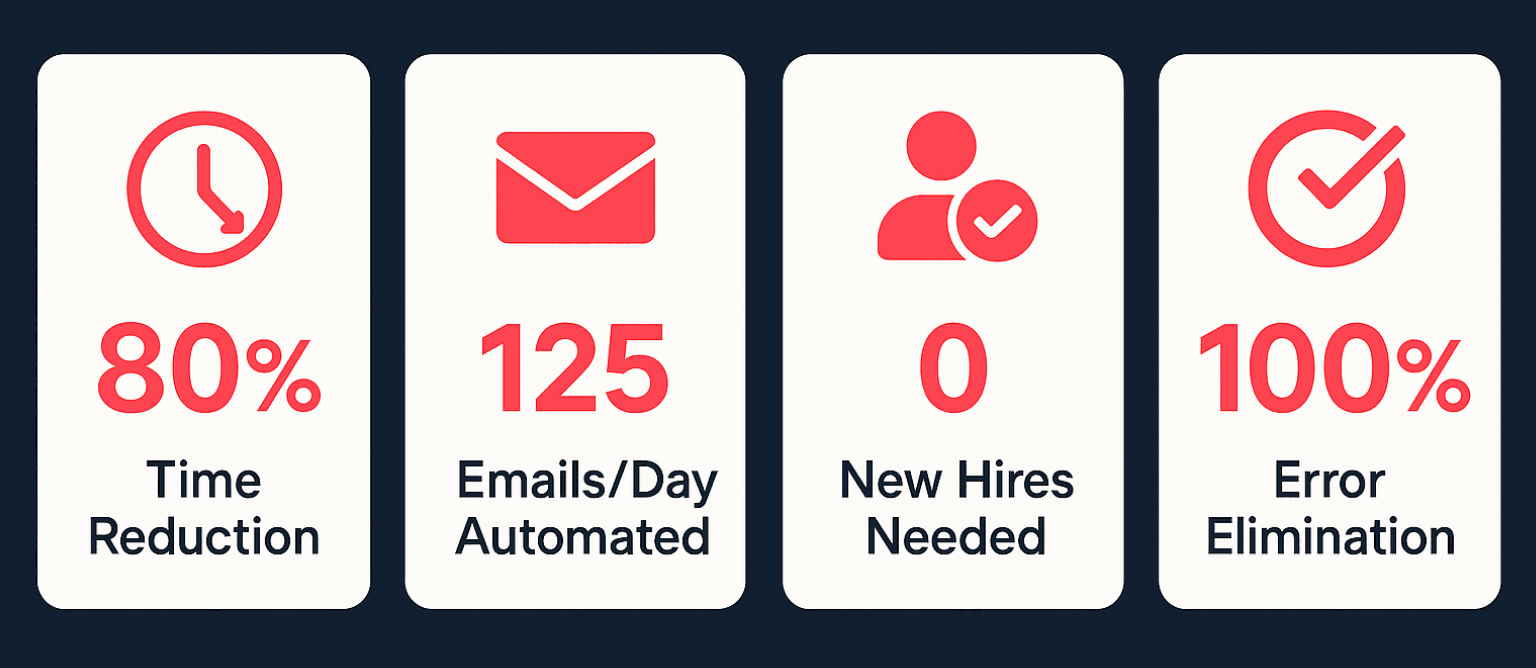 - After: 1-2 minutes per email × 125 emails = 2-4 hours daily